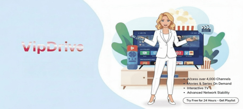 📖 Кратко о VipDrive: IPTV-сервис, который объединяет:
